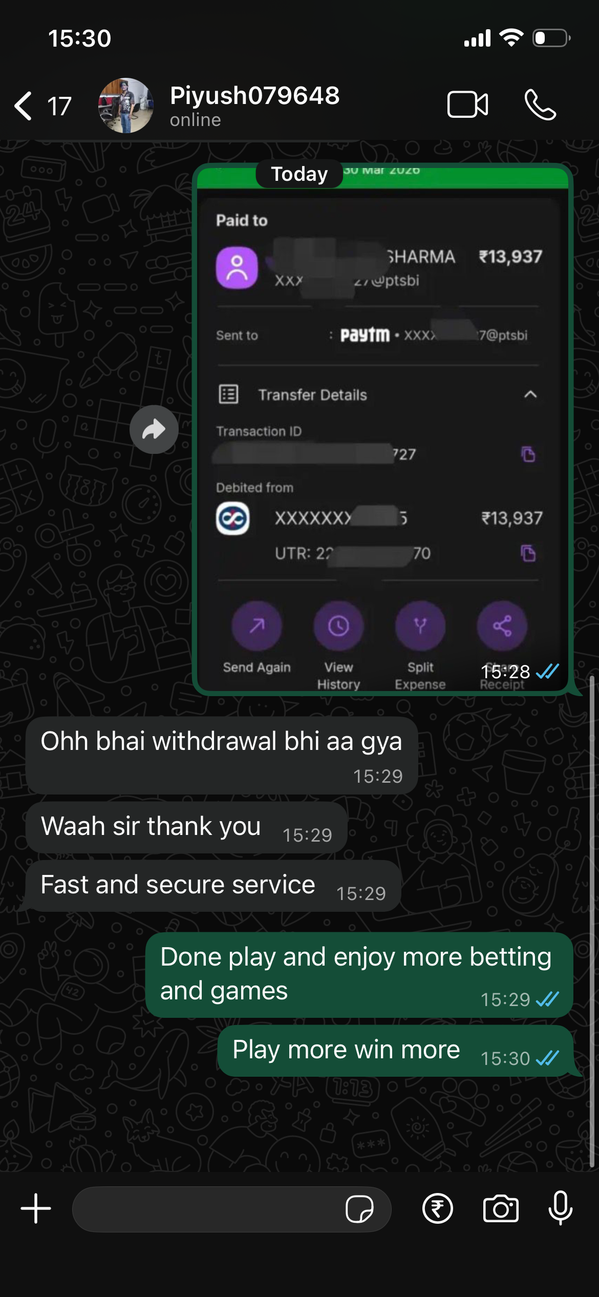 Navigate to cricket, IPL 2026, or casino. Place your bet. Win. Request a UPI withdrawal at any time — 2 AM, 2 PM, or during a live match. Funds arrive in your bank in under 24 hours, usually within 2–4 hours.