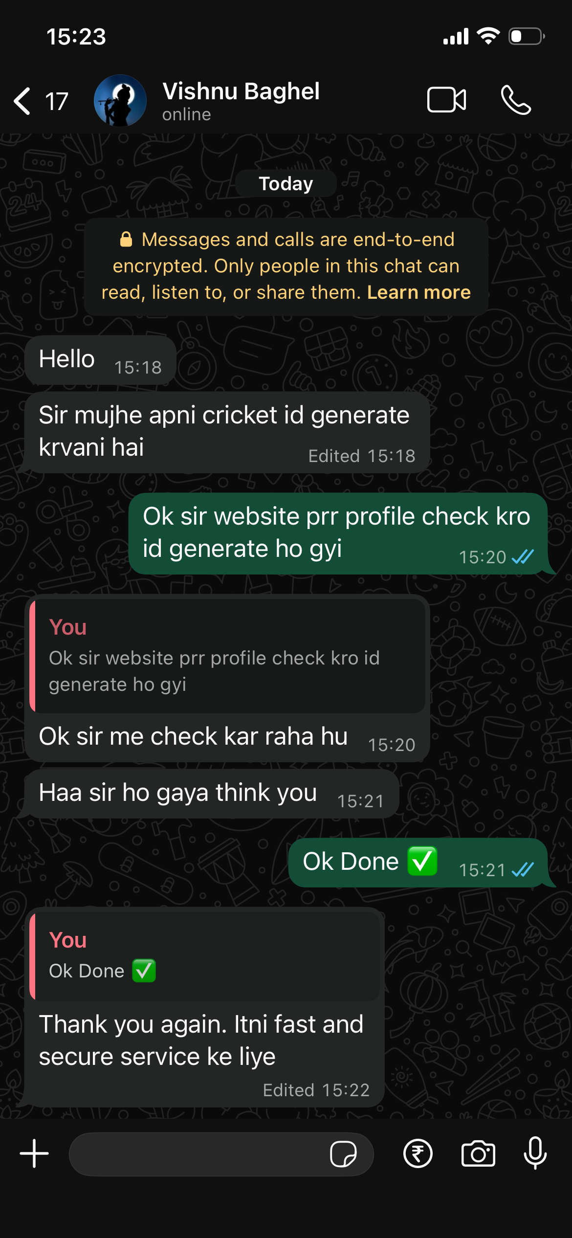 Tap the official WhatsApp button on this page. You connect directly to the Reddy Anna Book 247 support team. The entire ID creation process happens via WhatsApp — no website form, no email, no complex signup.